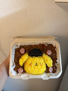 今日はポムポムプリンのキャラ弁! 昨日の晩御飯の残りのカレーで🍛 私が作るカレーは絶対に誰しもを唸らせる自信がある‼️ 可愛いお弁当で明日もお仕事頑張るよー🎶